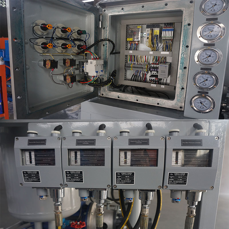 9.功能閥:用于倒油,即油液不通過本機過濾系統直接排出和將聚結分離罐內油液排出,以方便檢修本機。