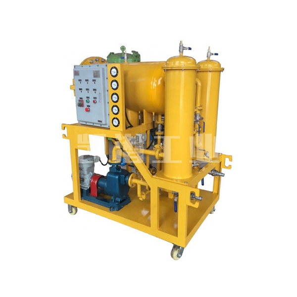 2.2雜質會引起油路堵塞及潤滑的好效果,對于傳統的過濾與分離設備來講,很難達到使用要求,從相互混雜在一起的一種液體中分離出另一種液體雜質更是尤為困難,聚結分離式凈油裝置集精密過濾和_脫水為一體,可有效清除油液中的顆粒雜質和乳化水、游離水,而不損害原產品的品質。對于含大量水分的油液,其分離效果尤為顯著,分離速度是傳統速度的幾倍,聚結式油凈化裝置好效果適應輕質油及低粘度油品。